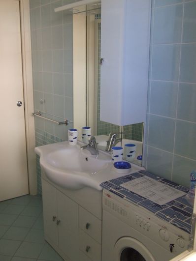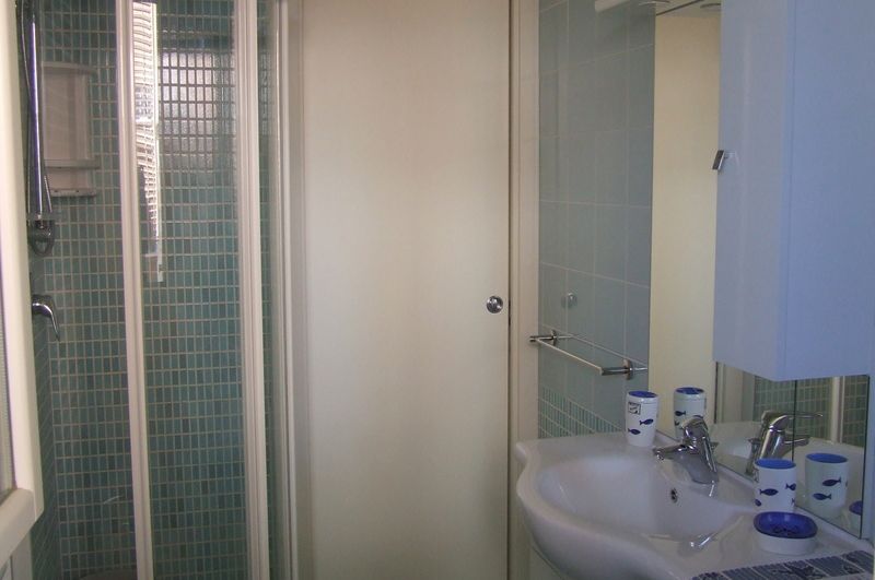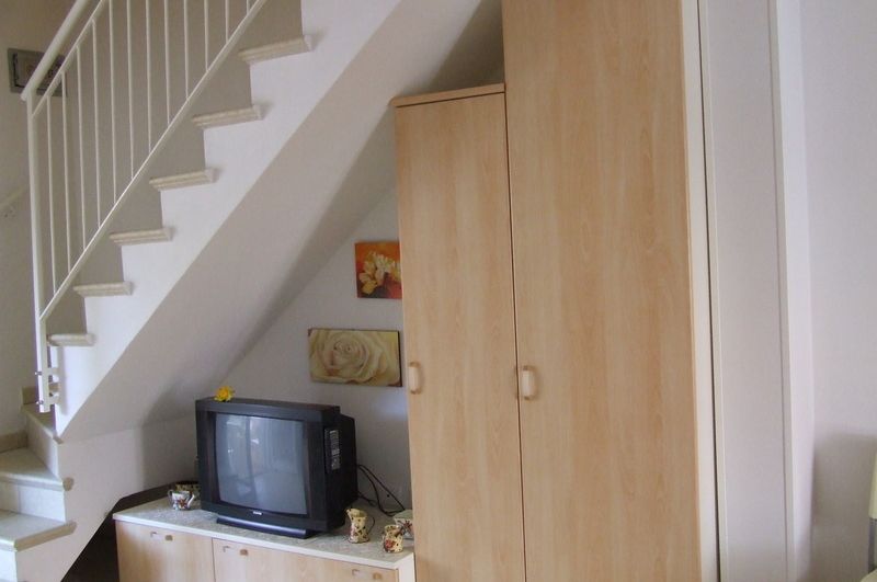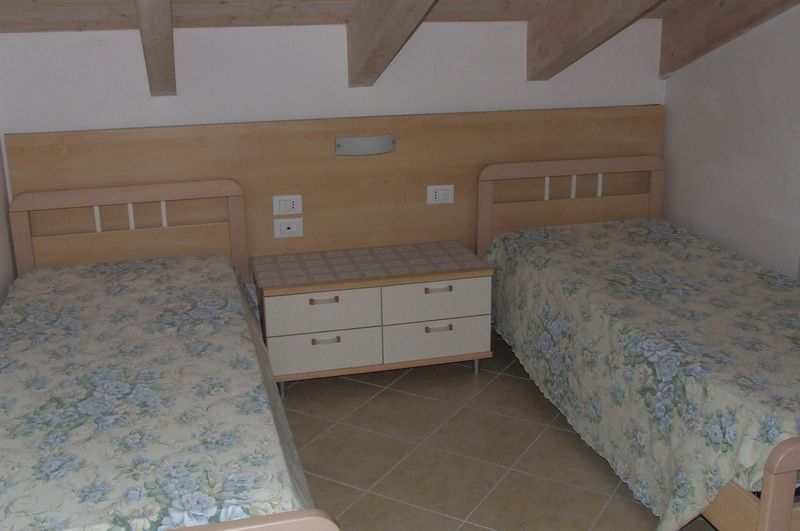 APPARTAMENTO AL PRIMO PIANO SVILUPPATO SU DUE LIVELLI CON INGRESSO INDIPENDENTE DAL PIANO TERRA: AL PRIMO PIANO: AMPIA ZONA GIORNO CON ANGOLO COTTURA DOTATO DI LAVASTOVIGLIE E MICROONDE, DIVANO LETTO MATRIMONIALE, TV, AMPIO TERRAZZO ATTREZZATO CON TENDA DA SOLE + SECONDO TERRAZZINO, UN BAGNO COMPLETO CON BOX DOCCIA E LAVATRICE. AL PIANO MANSARDATO: DUE CAMERE DA LETTO CLIMATIZZATE COMUNICANTI CON 1 LETTO MATRIMONIALE E DUE SINGOLI, UN BAGNO COMPLETO CON BOX DOCCIA. GARAGE PER UN AUTO NEL PIANO INTERRATO COLLEGATO CON L'APPARTAMENTO. NON SONO AMMESSI ANIMALI DOMESTICI.